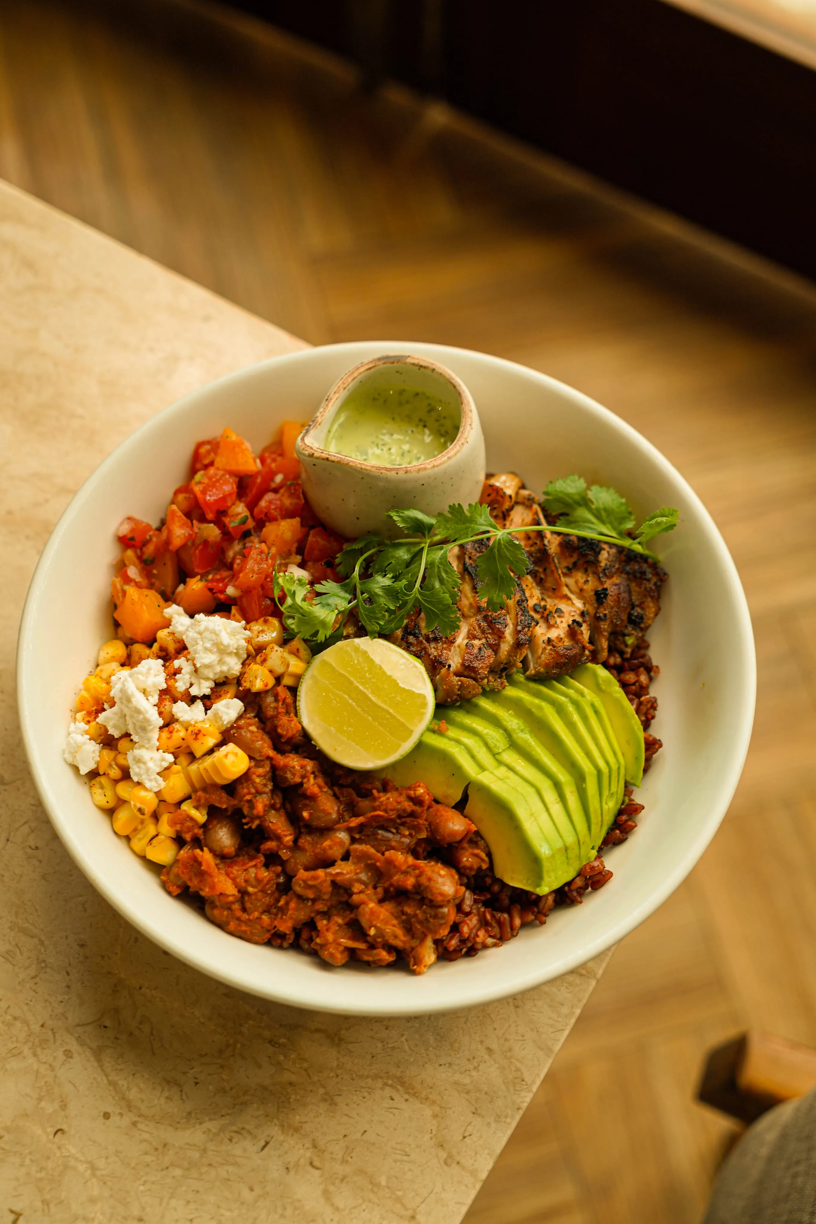 Warm oatmeal porridge, spiced stewed apple, granola, peanut butter, house made berry compote